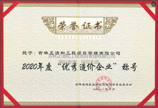 2020年度優(yōu)秀造價(jià)企業(yè)